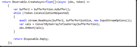This was awkward, but not a blocker to implementing the app on Metro… the blocker was to do with accessing the microphone. There are new Media Foundation libraries to do that, which do interoperate with the new C# async features than DirectShow (expose awaitable types):